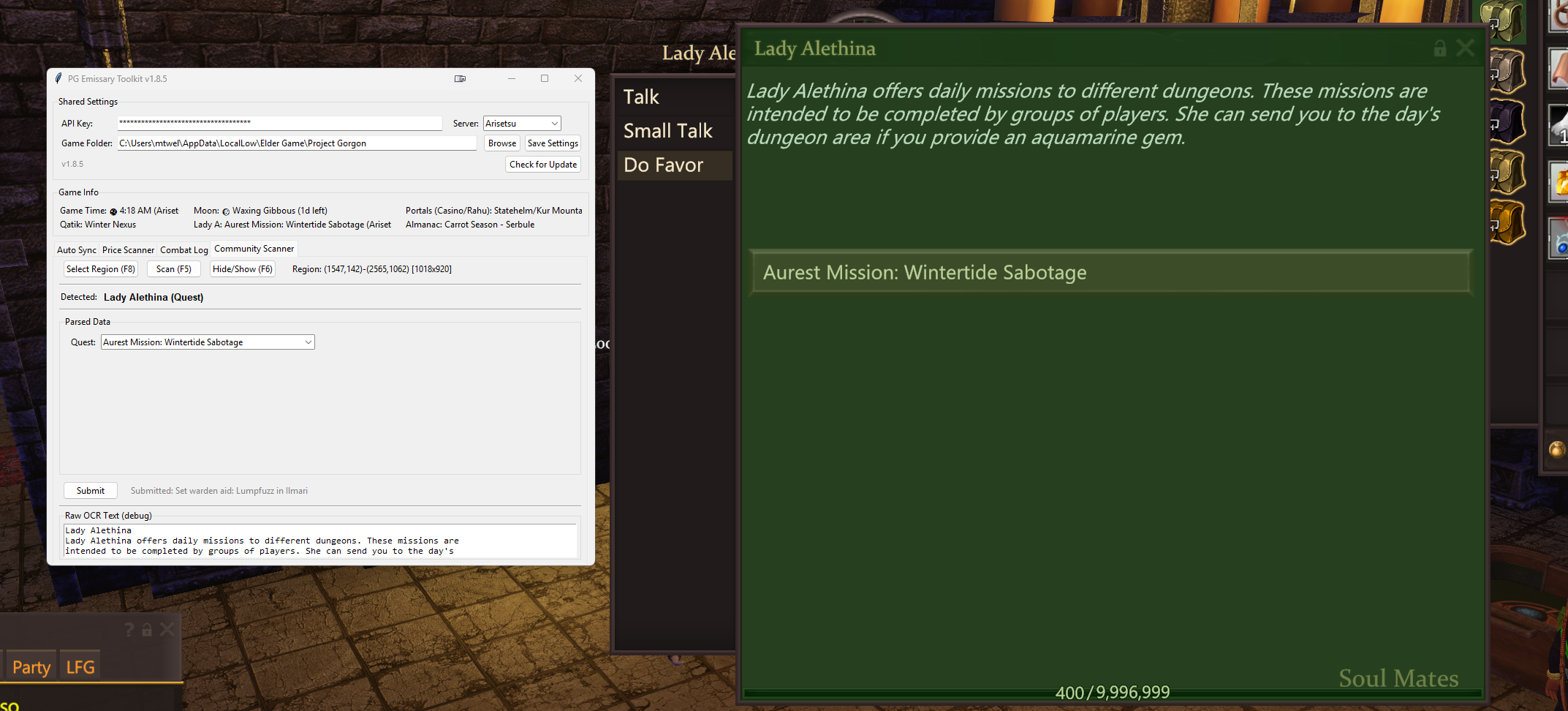 Ok, if you update the toolkit script, you should now be able to scan / daily info IE Almanac, LadyA, Warden. Midge is tough because it's just an icon and the quantity is on top of the icon, so it wasn't very accurate, I'll mess with it more later, but this should allow others to help. You just need to draw the box around the whole window as it relies on the banner at the top to see who / what is giving the data