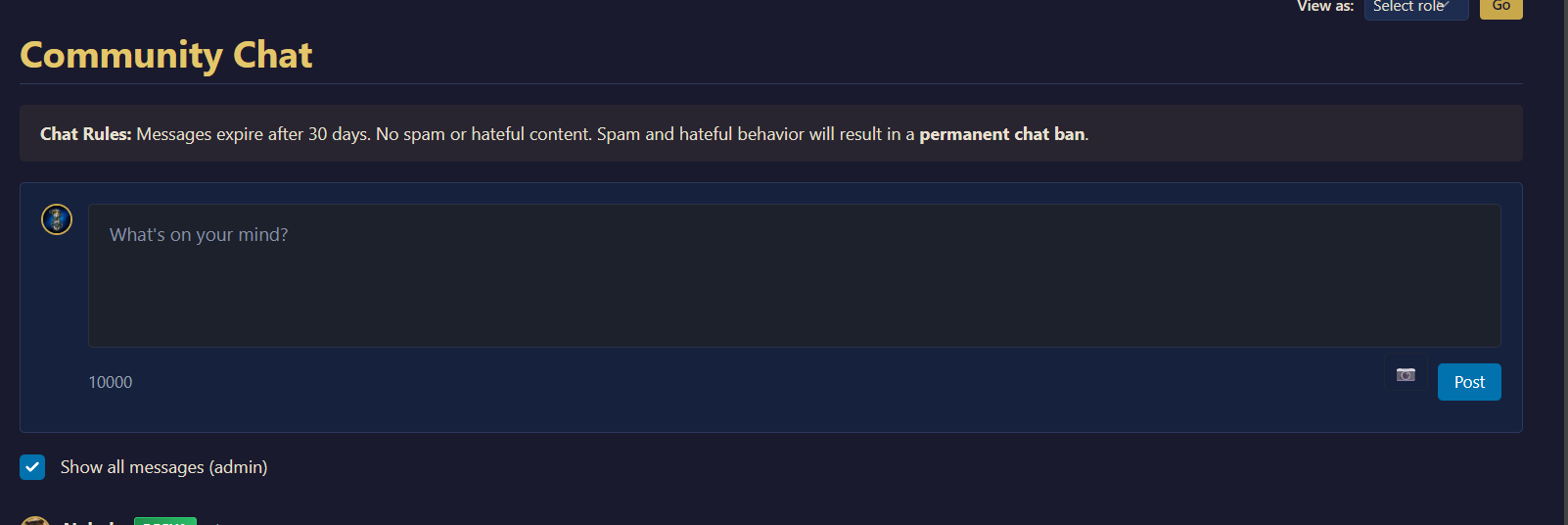 Chat Rules: Messages expire after 30 days. No spam or hateful content.