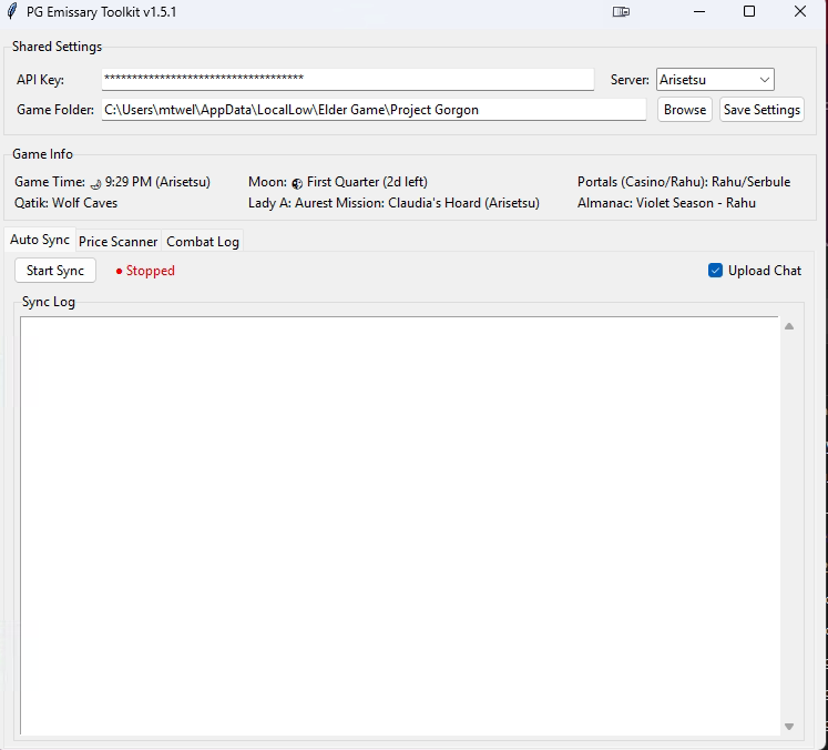 I made my toolkit launch with steam so it comes up when the game does, and everything stays on with the save settings but the "Start sync" needs to be pressed manually, it would be cool to have chat uploaded here without any input from me :D